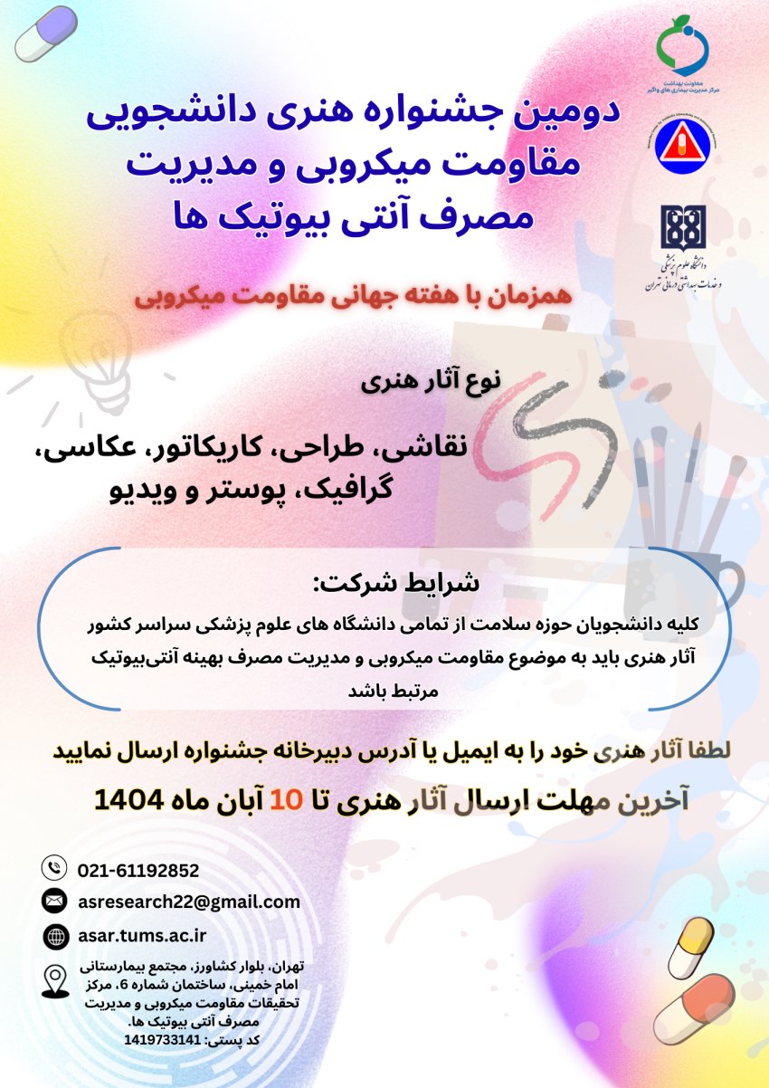 دومین جشنواره هنری دانشجویی مقاومت میکروبی و مدیریت مصرف آنتی بیوتیک دومین جشنواره هنری دانشجویی مقاومت میکروبی و مدیریت مصرف آنتی بیوتیک کد خبر : 305849 کپی کلمات کلیدی