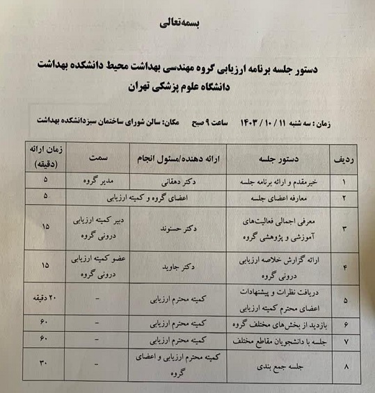 جلسه ارزیابی گروه مهندسی بهداشت محیط با حضور اعضای بورد