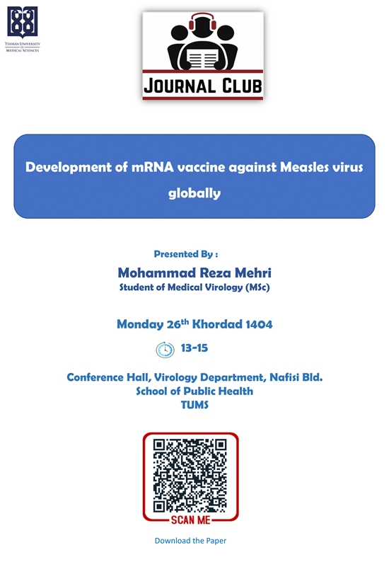 موضوع جلسه: Development of mRNA vaccine against Measles virus globally