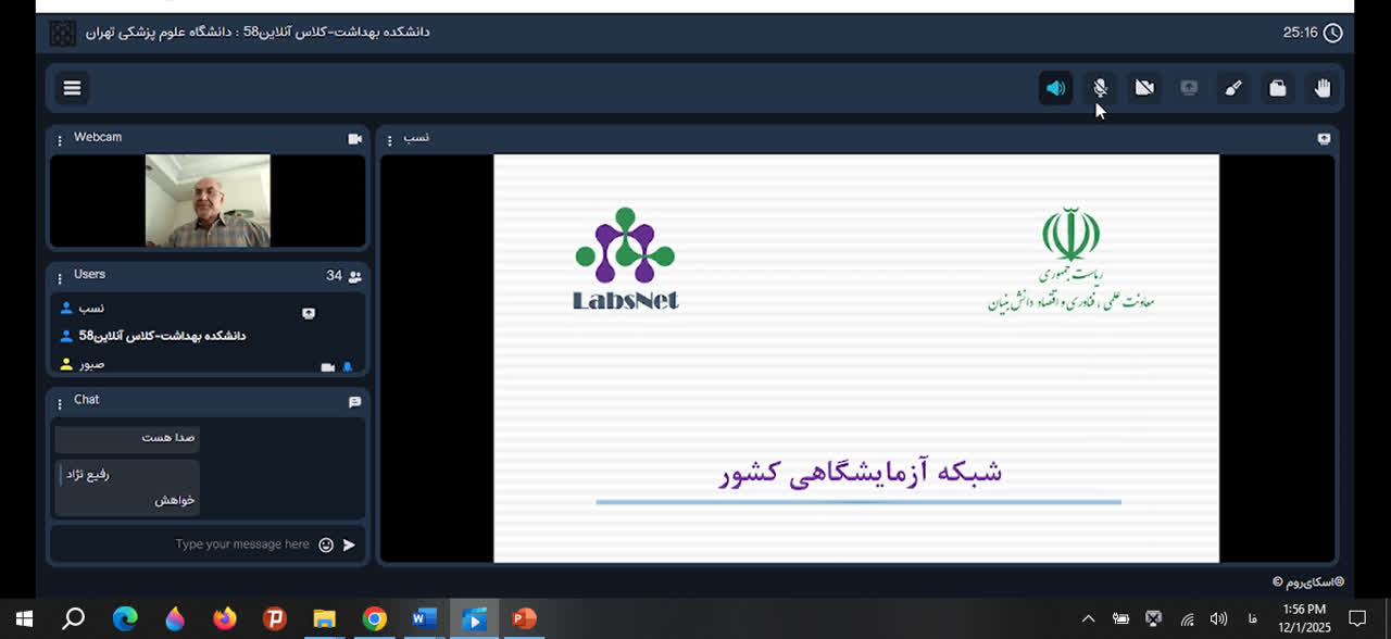 جلسه معرفی شبکه آزمایشگاهی کشور (لبزنت) روز دوشنبه ۱۰ آذرماه ۱۴۰۴ به صورت آنلاین و با حضور مسئولان، اساتید و دانشجویان دانشکده بهداشت برگزار شد.
