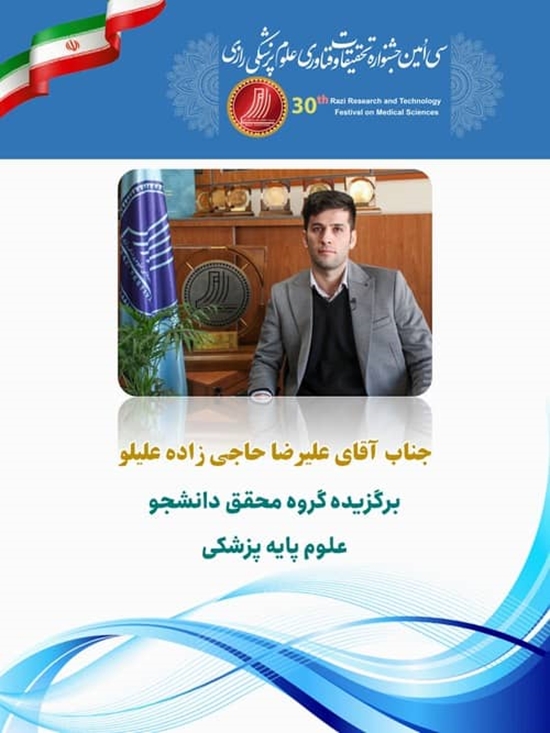 افتخارآفرینی علیرضا حاجی زاده دانشجوی دکترای رشته مدیریت خدمات بهداشتی و درمانی دانشکده بهداشت در سی‌امین جشنواره تحقیقات و فناوری علوم پزشکی رازی