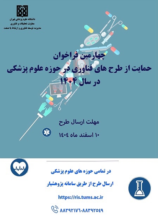 چهارمین فراخوان حمایت از طرح های فناوری در حوزه علوم پزشکی سال 1404 چهارمین فراخوان حمایت از طرح های فناوری در حوزه علوم پزشکی سال 1404 مهلت ارسال طرح 10 اسفند 1404 کد خبر : 316098 کپی کلمات کلیدی